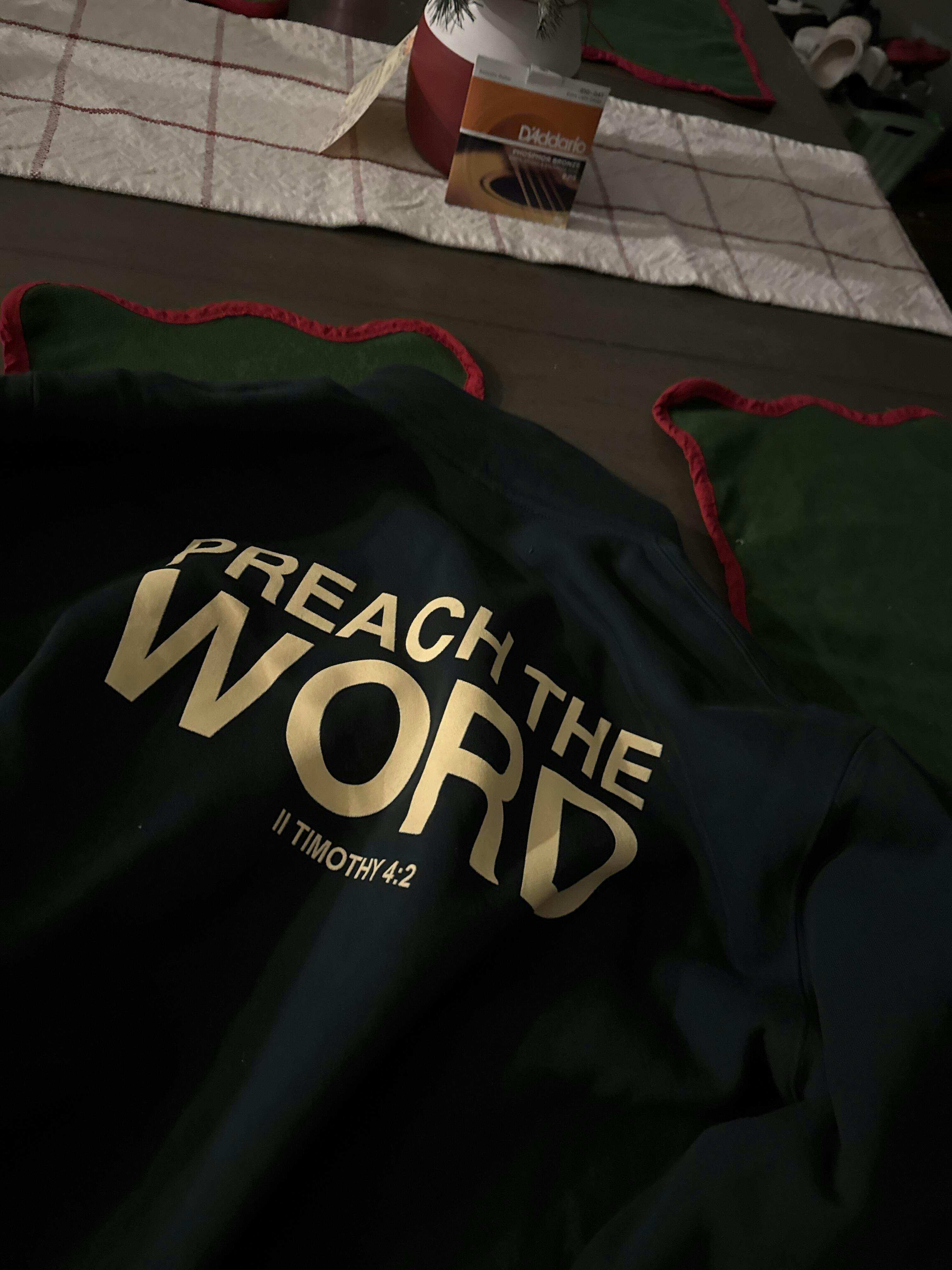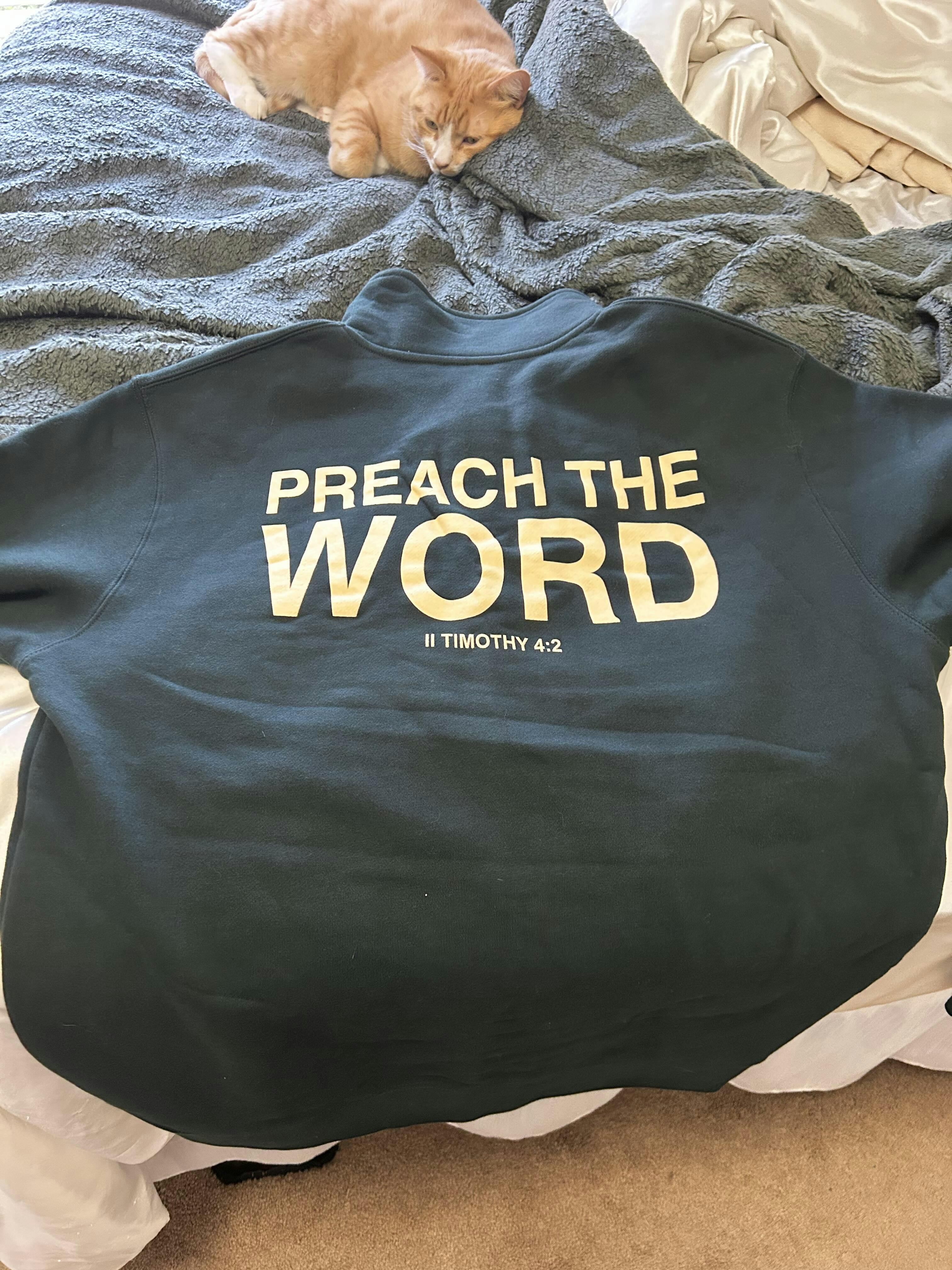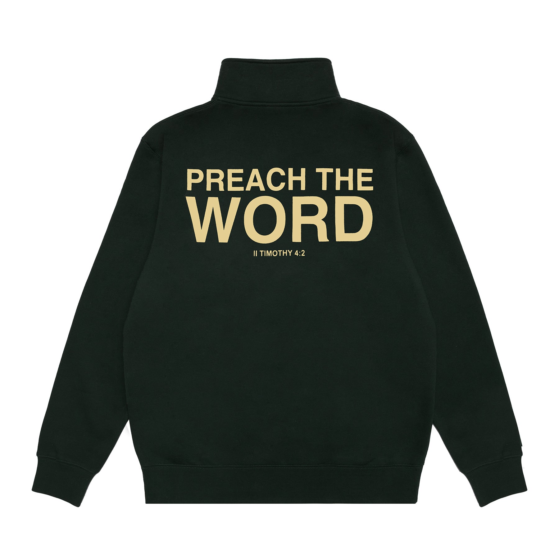 Carry the Great Commission in a clean, elevated silhouette. This premium half-zip features a minimal 2819 chest hit on the front and a bold “PREACH THE WORD – II TIMOTHY 4:2” back graphic that speaks for itself. Built for everyday wear—Sunday service to weekday grind.