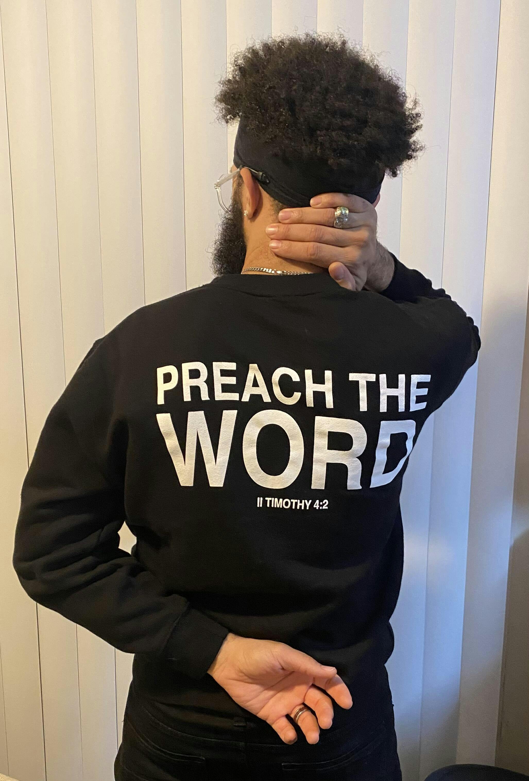 Rooted in Scripture. Ready for the streets. This tee keeps it minimal in the front and bold in the back — a wearable reminder of the charge in 2 Timothy 4:2. Structured, and mission-minded, it’s made for those who carry the Word wherever they go.