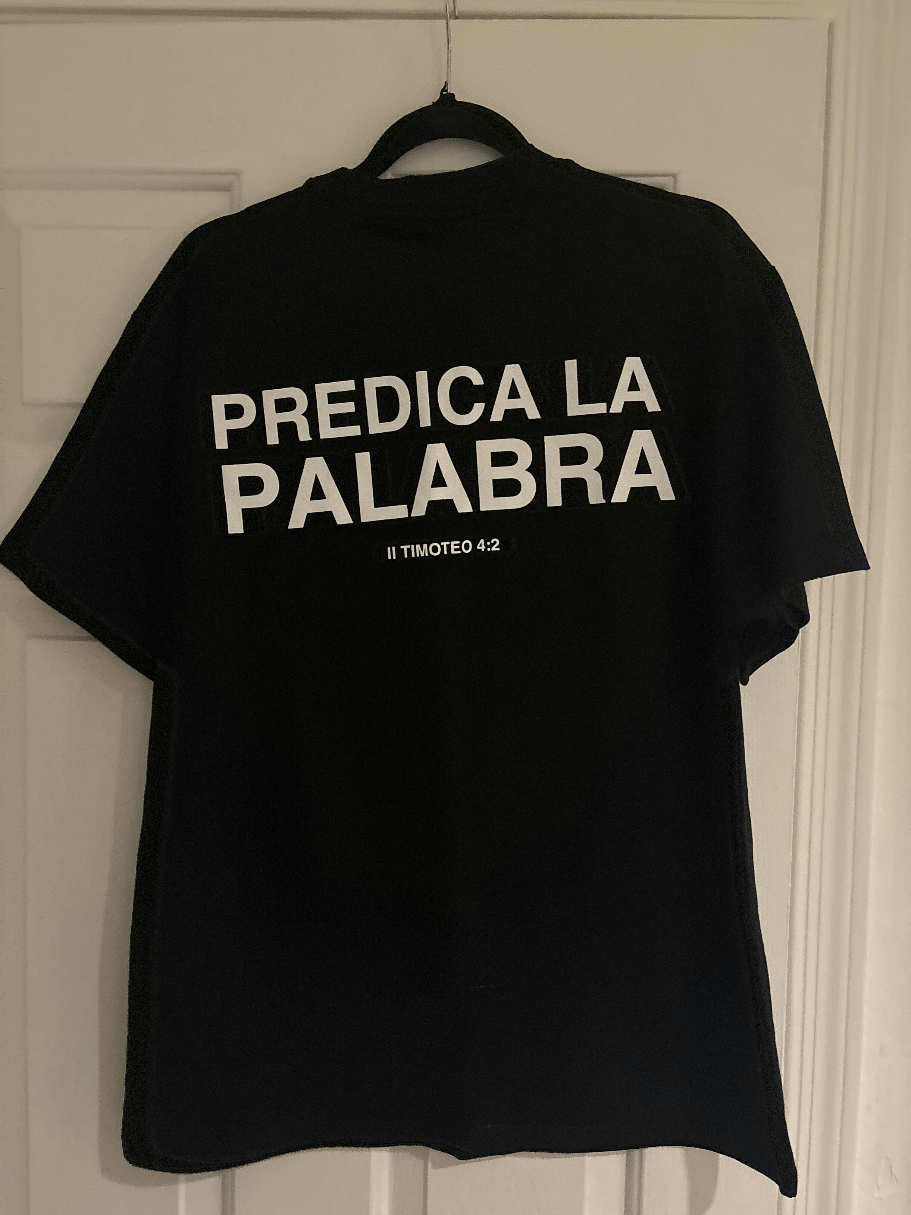 Con raíces en las Escrituras. Lista para la calle. Esta camiseta, minimalista por delante y con un toque llamativo por detrás, es un recordatorio del mandato de 2 Timoteo 4:2. Estructurada y con una visión misionera, está hecha para quienes llevan la Palabra a dondequiera que vayan.