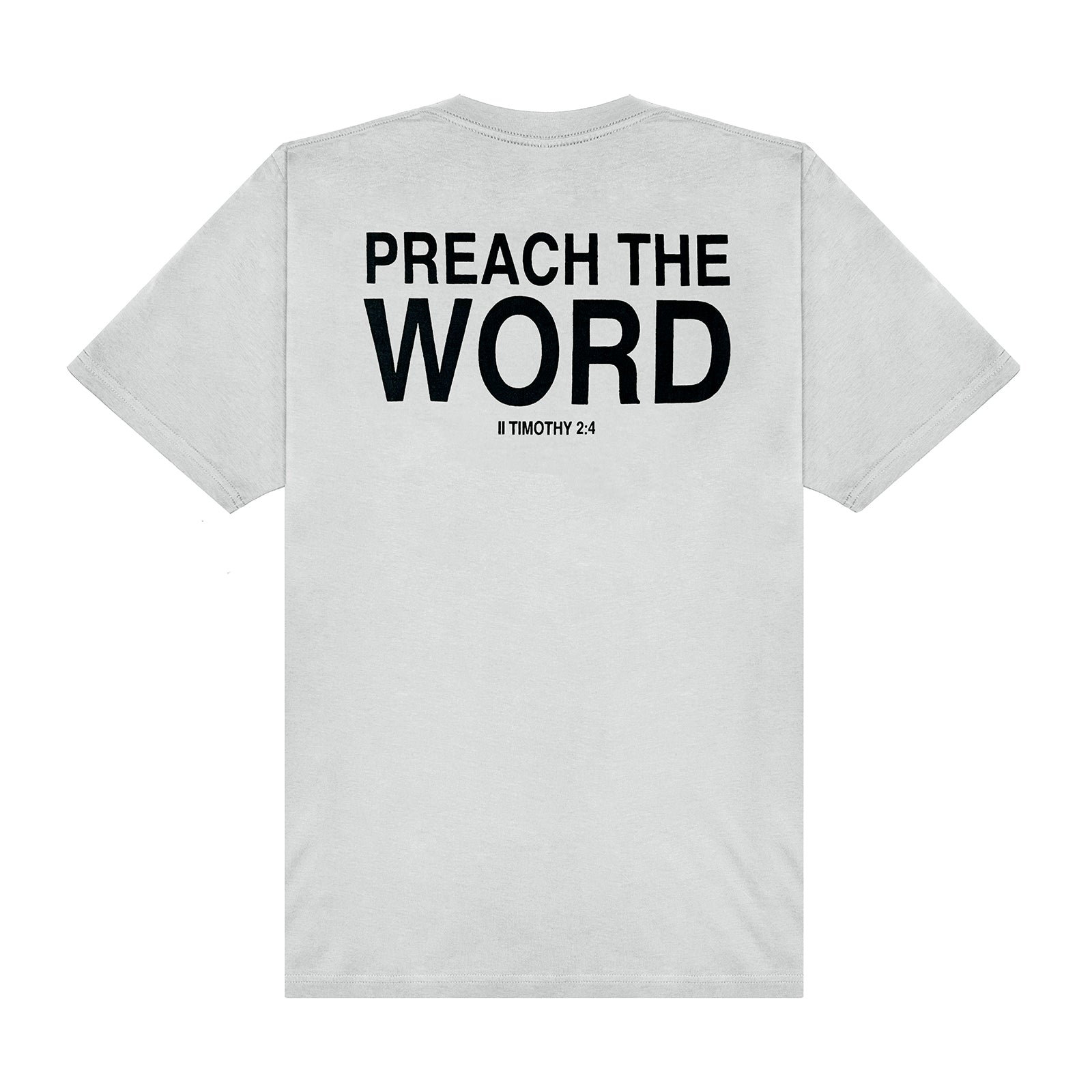 Rooted in Scripture. Ready for the streets. This tee keeps it minimal in the front and bold in the back — a wearable reminder of the charge in 2 Timothy 4:2. Structured, and mission-minded, it’s made for those who carry the Word wherever they go.